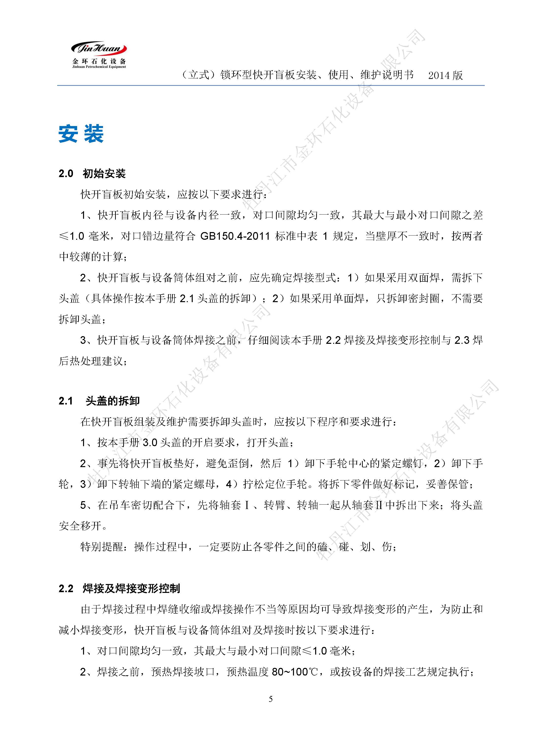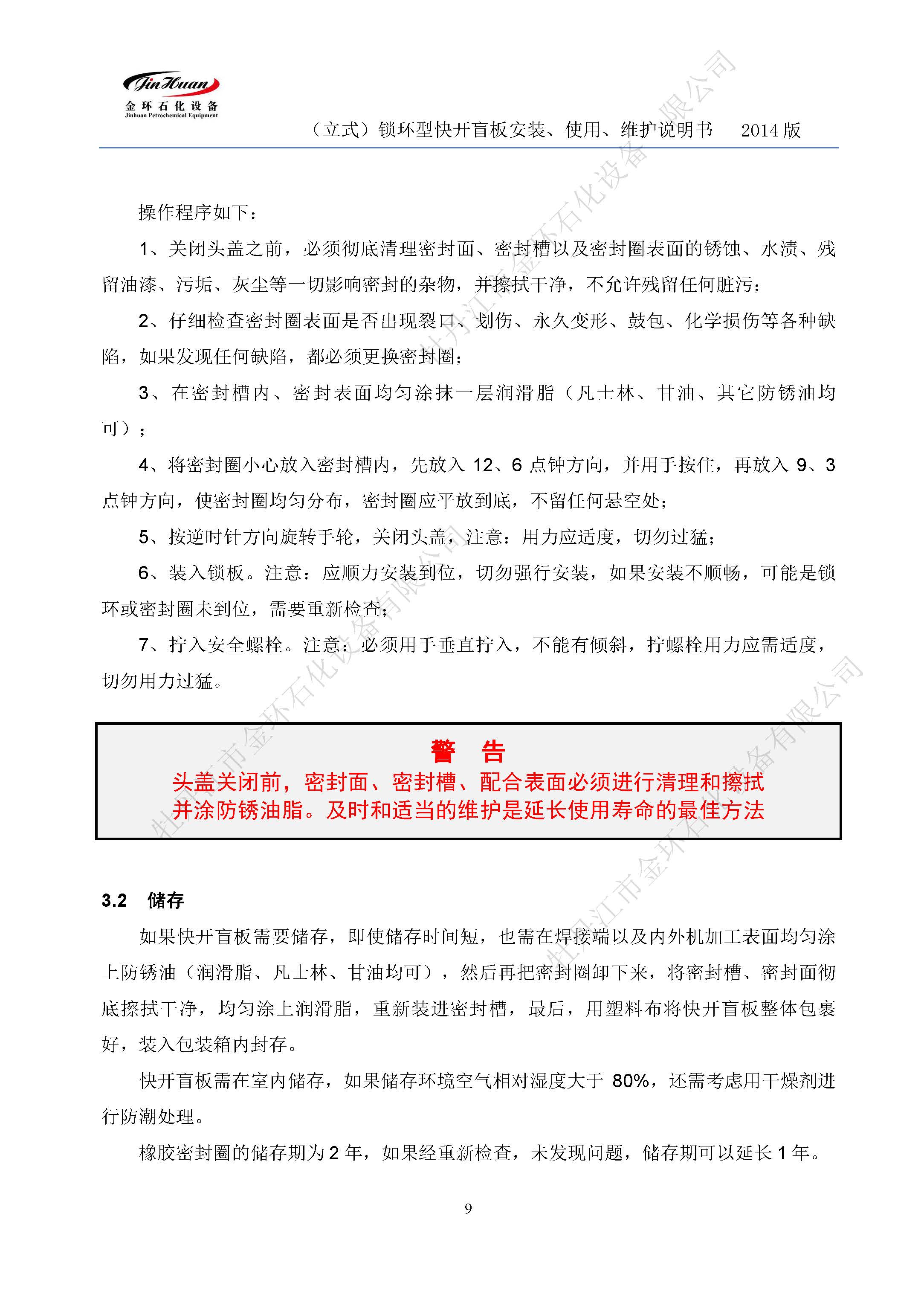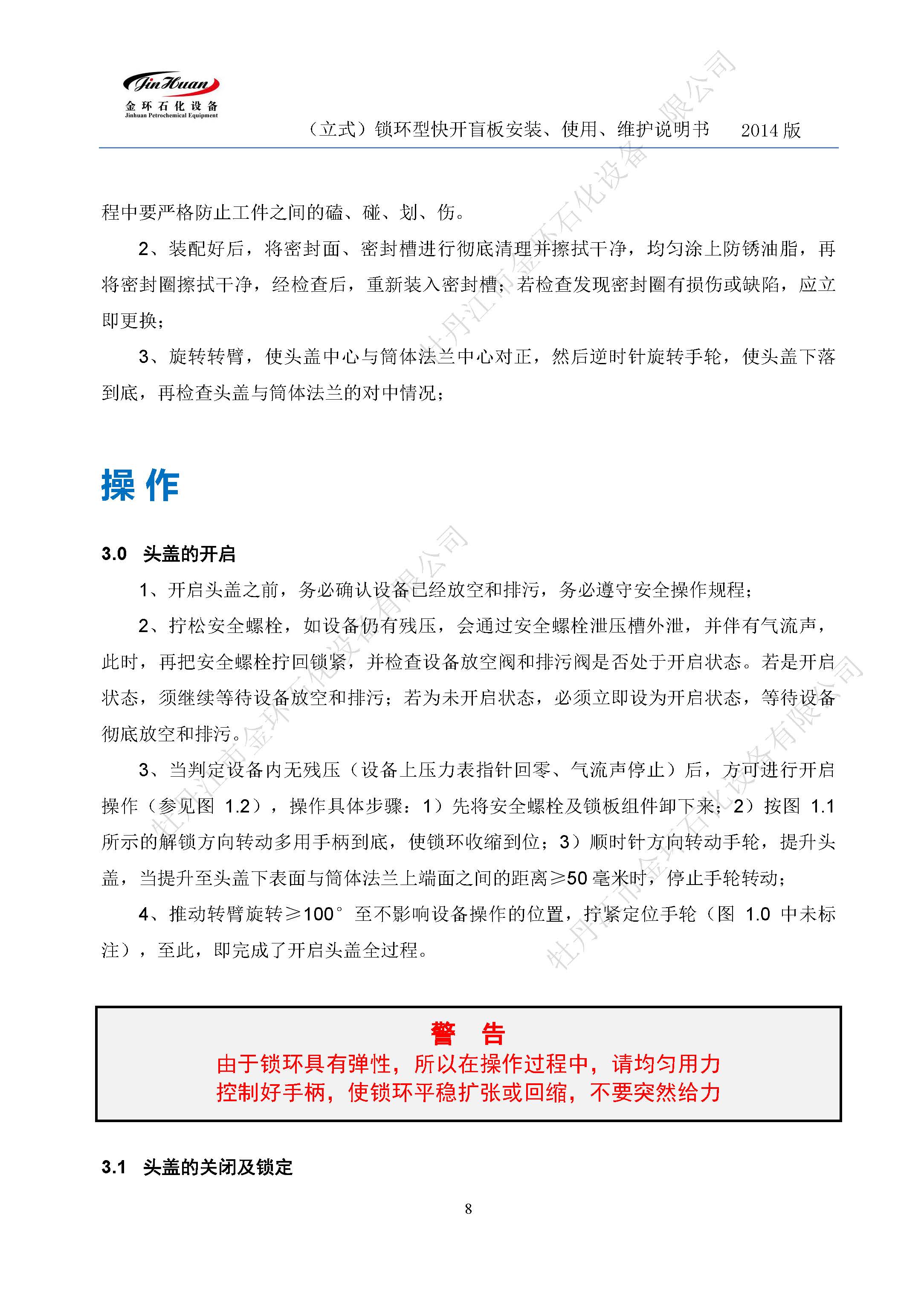 鎖環(huán)立式快開盲板說明書