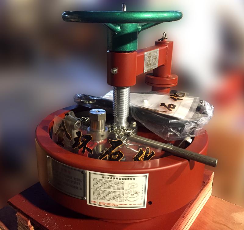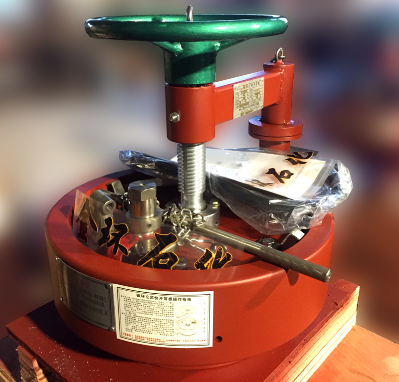 快開盲板是壓力容器快開門蓋的一種型式,廣泛應用在天然氣領域中的需經常啟閉的設備上。常用的快開盲板分為牙嵌型、卡箍型、插扣型、鎖環(huán)型、漲環(huán)型、固定壓力環(huán)型等典型的結構,以手動操作為主。