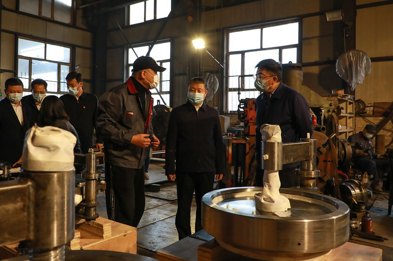 在牡丹江市金環(huán)石化設備有限公司,高忠遠同志深入生產(chǎn)車間檢查安全生產(chǎn)、隱患排查、疫情防控等措施落實情況,向企業(yè)員工宣講省十三次黨代會精神,并認真聽取企業(yè)歷史沿革、生產(chǎn)經(jīng)營、經(jīng)濟效益等情況介紹,了解企業(yè)發(fā)展面臨的問題和困難,對企業(yè)安置殘疾人就業(yè)給予充分肯定和高度贊譽。他指出,金環(huán)石化是由國有企業(yè)轉(zhuǎn)制而來的股份制民營企業(yè),是目前國內(nèi)唯一一家專門生產(chǎn)快開盲板的廠家,產(chǎn)品銷售全國各省、市、自治區(qū)以及各大油田,并遠銷東南亞、中東地區(qū),是我市優(yōu)秀民營企業(yè)的代表和典范。他強調(diào),推動牡丹江全面振興全方位振興,工業(yè)要率先振興。企業(yè)要在學習貫徹省十三次黨代會精神上下真功夫、實功夫,按照省黨代會關于“八個振興”,特別是產(chǎn)業(yè)振興和 “換道超車”部署要求,搶抓新一輪科技革命和產(chǎn)業(yè)變革機遇,勇于創(chuàng)新、敢于突破,切實把省黨代會精神轉(zhuǎn)化為指導生產(chǎn)、推動企業(yè)發(fā)展的強大動力。要全面落實安全生產(chǎn)主體責任,牢固樹立紅線意識、底線思維,建立健全全員安全生產(chǎn)責任制,進一步筑牢安全防線。他要求,轄區(qū)黨委政府特別是相關部門要以“能力作風建設年”活動為契機,針對企業(yè)發(fā)展痛點難點,不斷深化紓困解難措施,用心用情用力當好企業(yè)發(fā)展服務員。屬地公安機關要充分發(fā)揮職能作用,依法嚴厲打擊妨礙企業(yè)生產(chǎn)經(jīng)營違法犯罪活動,常態(tài)開展安全生產(chǎn)、疫情防控工作督導指導,全力保障企業(yè)合法權(quán)益和安全生產(chǎn)。
