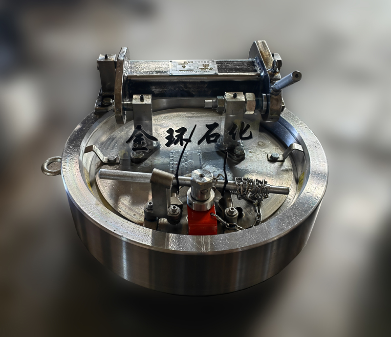 快開盲板是用于壓力管道或壓力容器的圓形開口上的一種機械裝置。一般由筒體法蘭、頭蓋、勾圈或卡箍、密封圈、安全聯(lián)鎖機構、開閉機構、轉臂及短節(jié)(需要時)等部件構成。