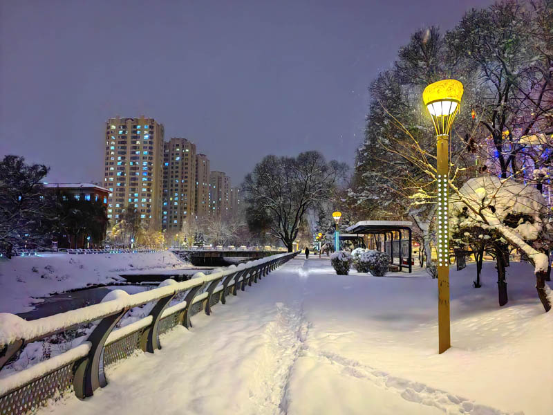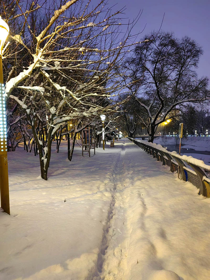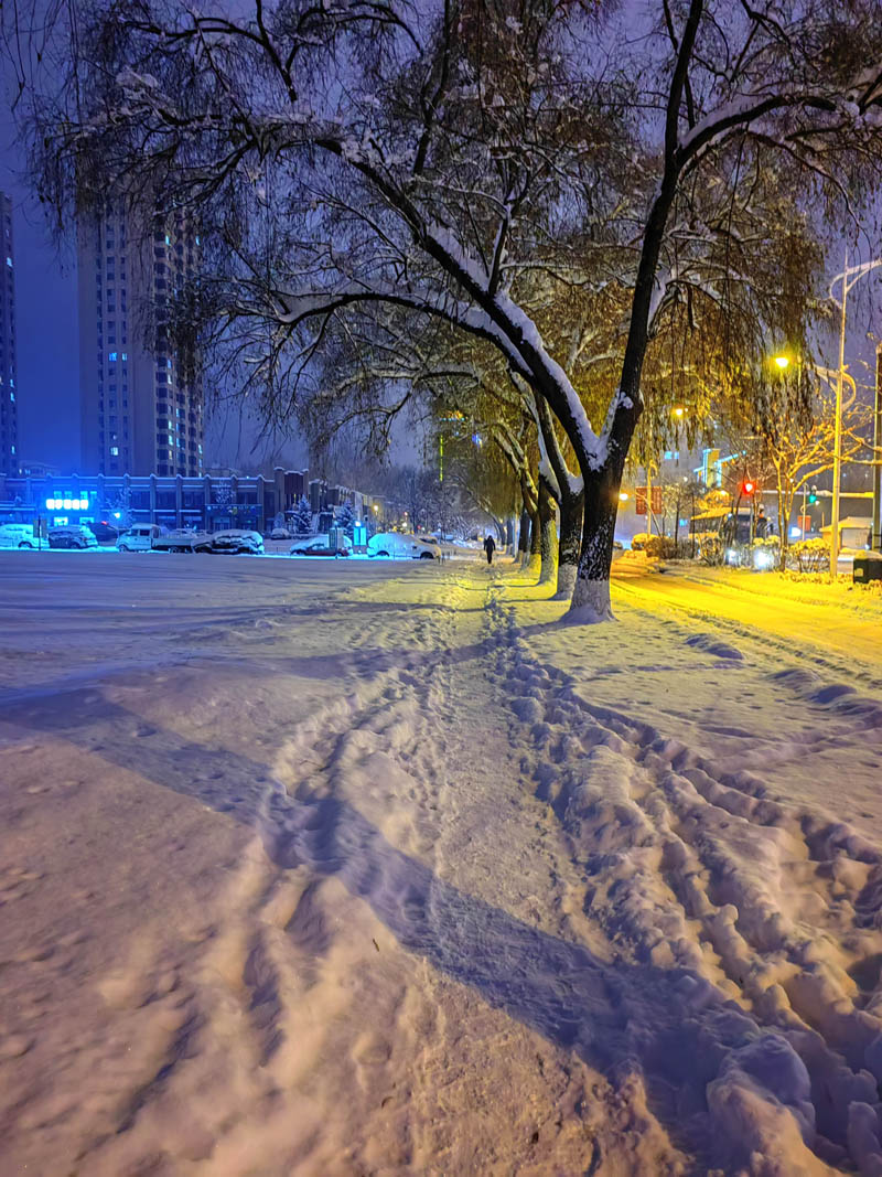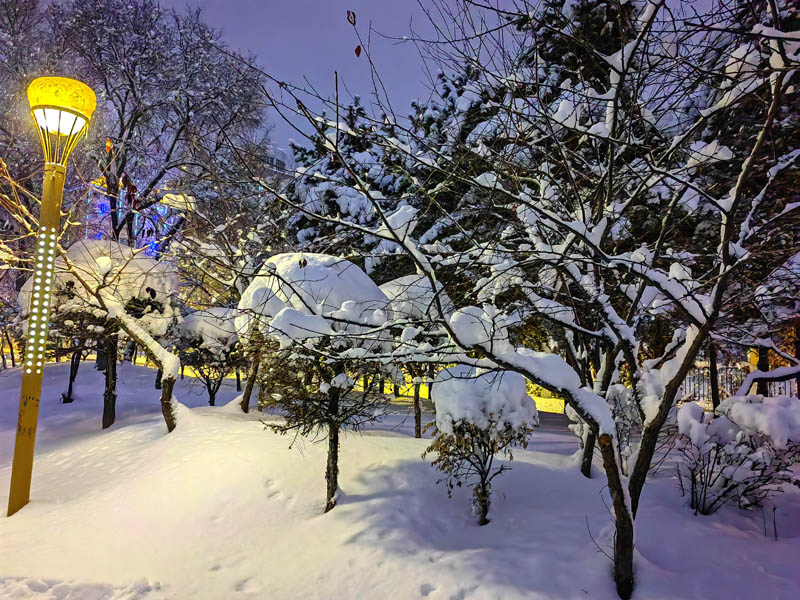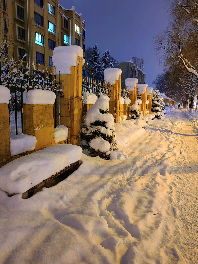 初冬銀裝素裹的傍晚