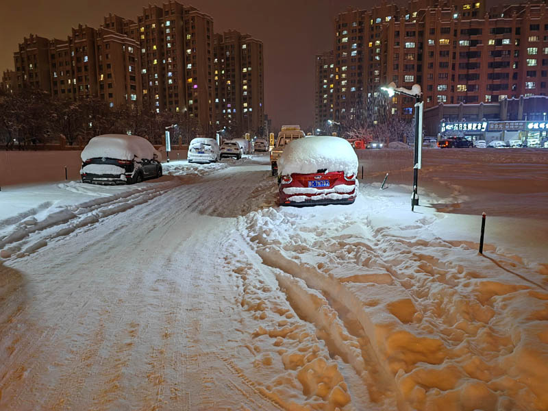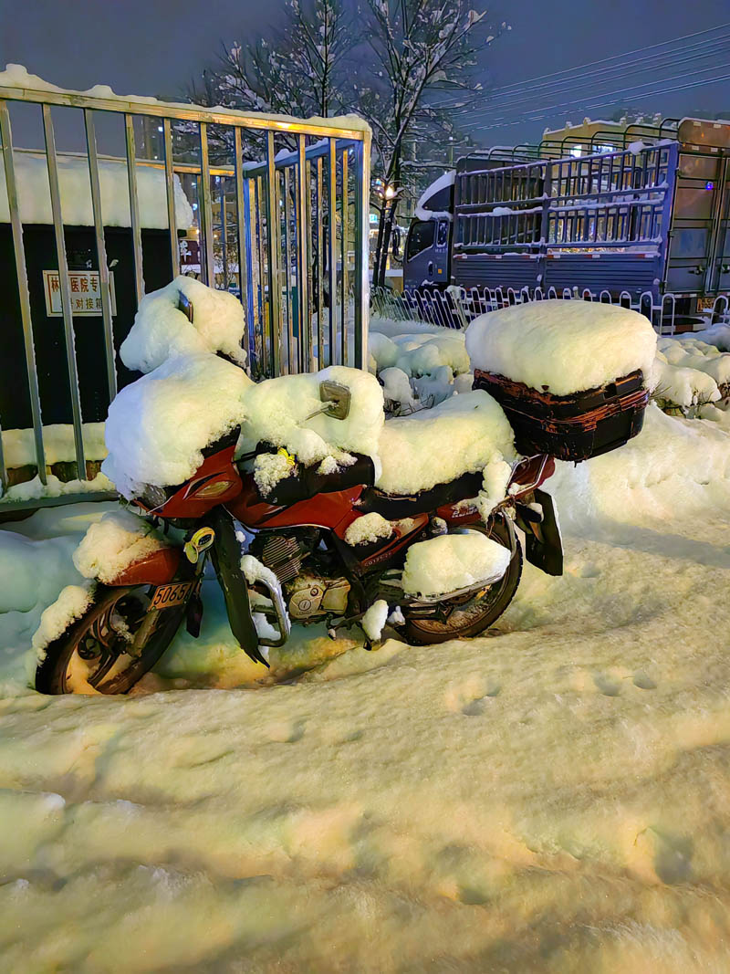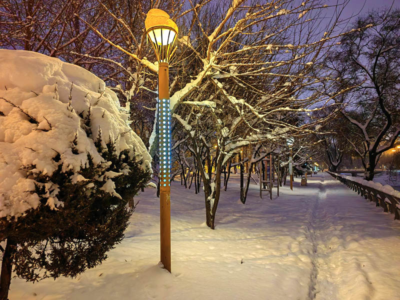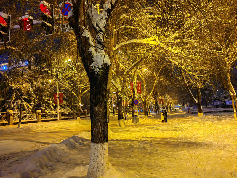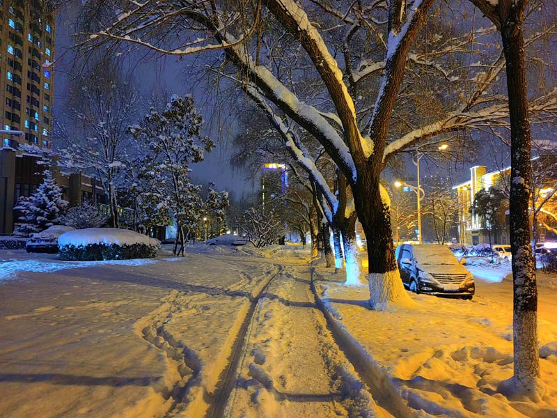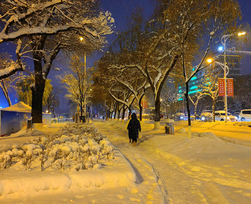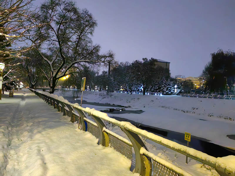 初冬銀裝素裹的傍晚